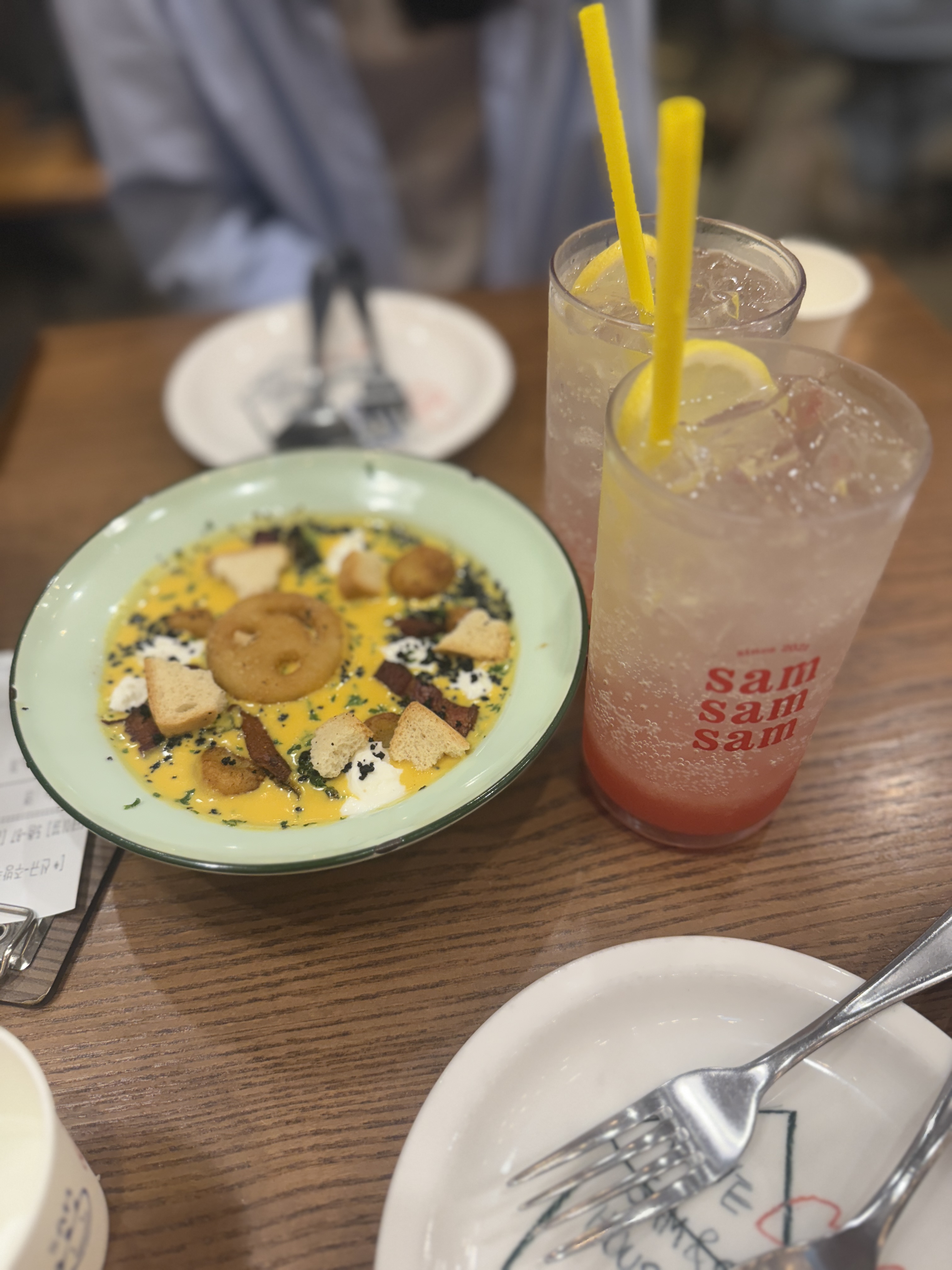 직원분이 추천해주신 단호박 뇨끼 + 잠봉뵈르 + 피치레몬에이드 조합으로 선택했어요.
